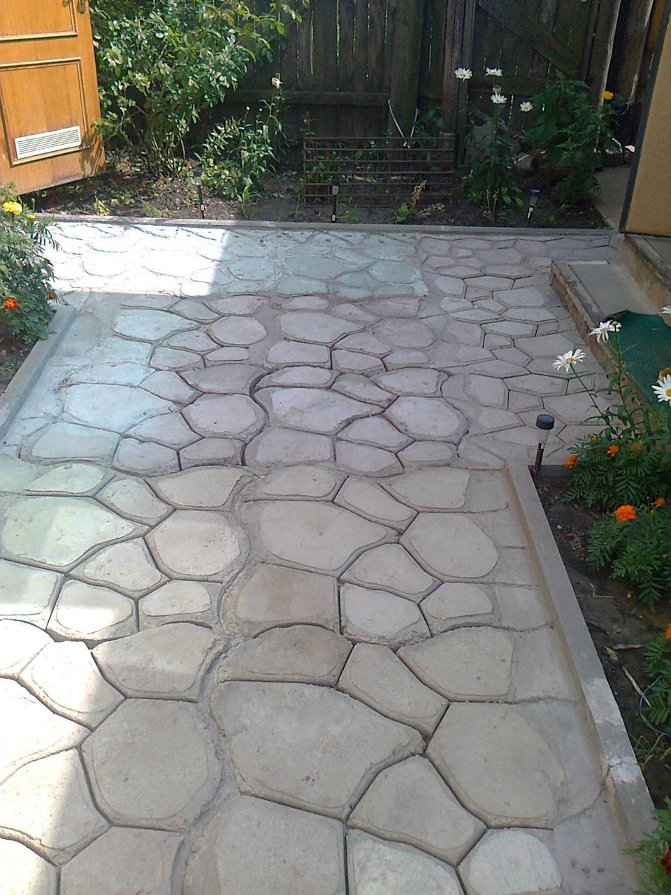 - Через 20-30 минут трафарет аккуратно убирают и повторяют процесс, пока дорожка не будет полностью готова.