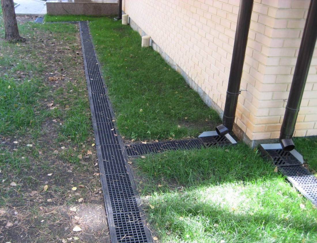 В некоторых случаях для отвода только атмосферной влаги достаточно применения лишь открытого типа пристенного дренажа, представляющего собой совокупность лотков, расположенных кольцом вблизи дома.
