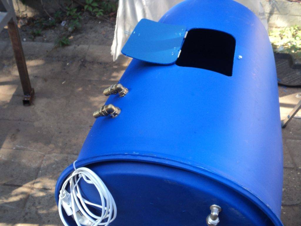 Перед тем как нагреть воду в летнем душе, для нормальной работы такого котла к нему необходимо подвести холодную воду из водопровода или из любой накопительной емкости. Для этой цели рекомендуется использовать пластмассовую бочку объемом 200 л. Накопительную емкость следует расположить на 20-30 см выше колонки. Этого перепада давления вполне достаточно, чтобы принимать теплый душ на даче вне зависимости от погоды.