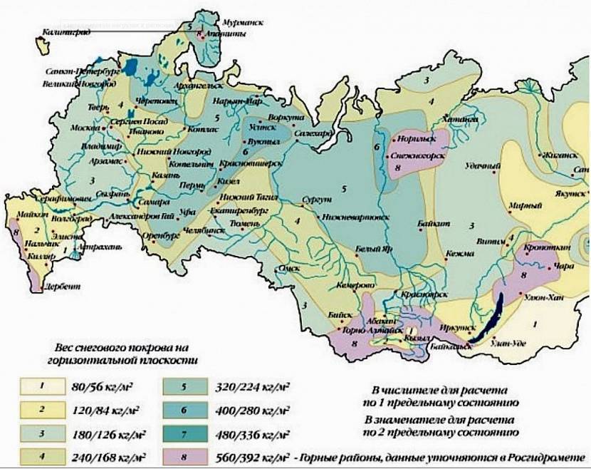 Вес снегового покрова на горизонтальной плоскостиИсточник kak-sdelat-kryshu.ru