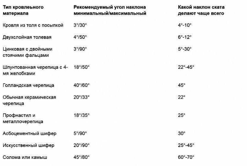 Рекомендованный угол уклонаИсточник kak-sdelat-kryshu.ru