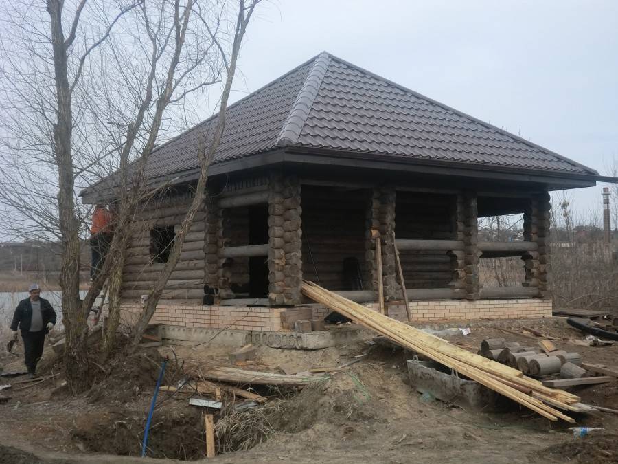 - На стены выкладывается брус, строится коробка.