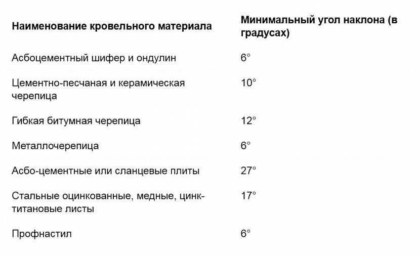 Минимальный угол уклона кровлиИсточник kak-sdelat-kryshu.ru