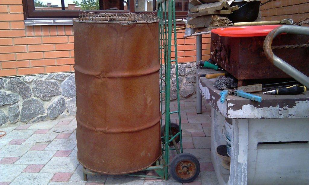Место должно быть ровным и удобным для работы, его размещают на открытом пространстве без высоких кустов и деревьев. После выбора металлической ёмкости для камеры сгорания, её накрывают куском металла для препятствия выхода дыма. Дымоходный канал устраивается на уровне выше коптильной камеры. Для одинакового распределения и выброса вредных компонентов после сгорания топлива вход делают не менее 20 см.