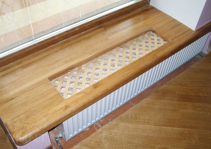 - С верхней крышкой. Используют обычно на батареи типа «гармошка» если радиатор выступает за подоконник. Форма крышки сделана так, что решетка без проблем держится за радиатор.