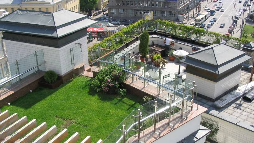 В некоторых случаях, кровельные работы (Москва этому яркий пример), проведенные на этапе строительства или благоустройства кровли, позволяют оборудовать на крыше открытые сады, газоны, бассейны, однако подобные проекты требуют тщательного согласования и проведения точных расчетов. Если строительная организация, занимающаяся устройством эксплуатируемой кровли, не выполнила подобные работы сразу, то самостоятельно производить вышеперечисленные улучшения нельзя.