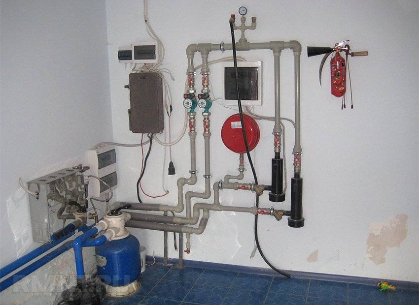 При подключении труб отопления к входным и выходным патрубкам электрического котла необходимо исключить нагрузку на корпус агрегата. Трубы и размещенные на ней элементы (краны, циркуляционный насос и т.д.) должны быть надежно прикреплены к несущим конструкциям или стенам.