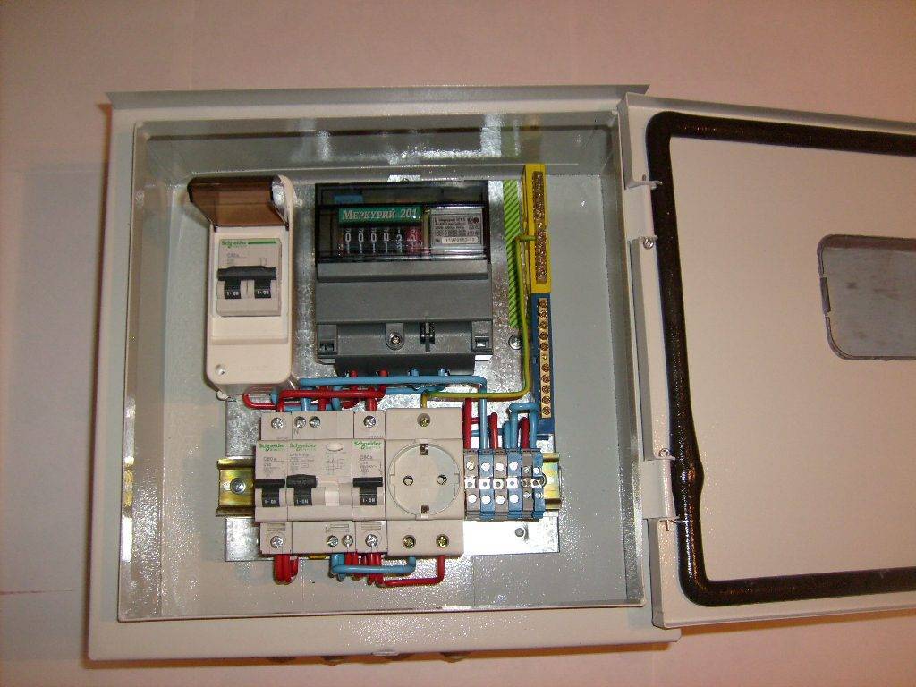 В только что возведенном доме вводной автомат и счетчик устанавливают электрики. С этим ничего поделать нельзя. Кстати планировать свой будущий электрический щиток нужно исходя из особенностей и места установки вводного автомата и счетчика. На сегодняшний день в новых домах приборы учета и вводные электрические коммуникации размещаются вне жилого помещения. Например, счетчик устанавливают на электрический столб или специальную опору, которая заранее монтируется на вашем земельном участке, ну а вводной автомат — куда-нибудь на стену дома.