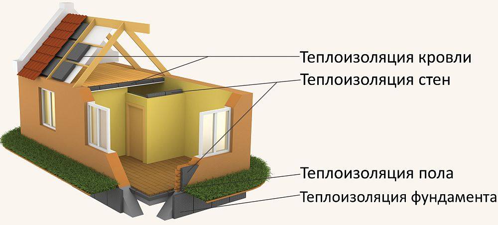 - Хорошей теплоизоляции стен, пола, потолка. Следует предотвратить образование “мостиков холода”.