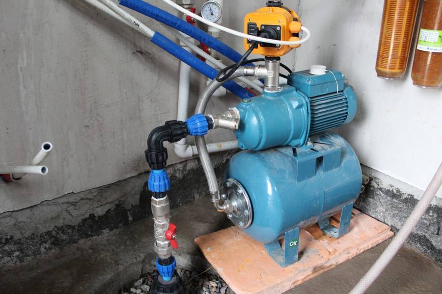 Придётся также установить дополнительный бак возле помпы. В нем будет создаваться давление для работы линии рециркуляции, чтобы снять нагрузку с насоса. А последний можно устанавливать прямо в доме. Например, в подвале. Лишнее расстояние до скважины компенсируется эжектором и не повлияет на общую производительность.