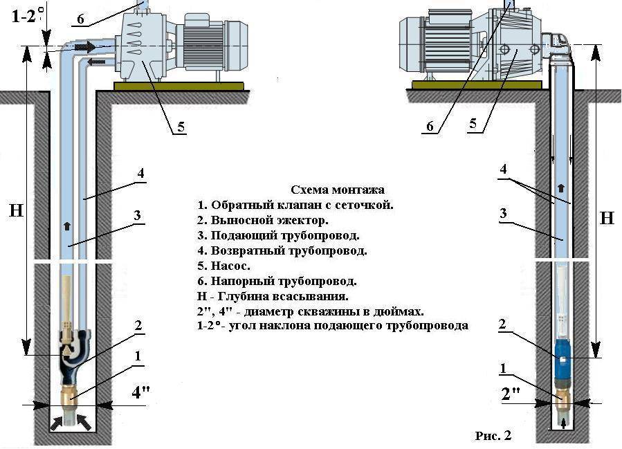 Для всех насосов поверхностного типа крайне важно, как именно размещён внешний погружной эжектор. Чтобы сберечь оборудование от сбоев и продлить срок эксплуатации, трубы, идущие к поверхности от эжектора, необходимо разместить строго вертикально
