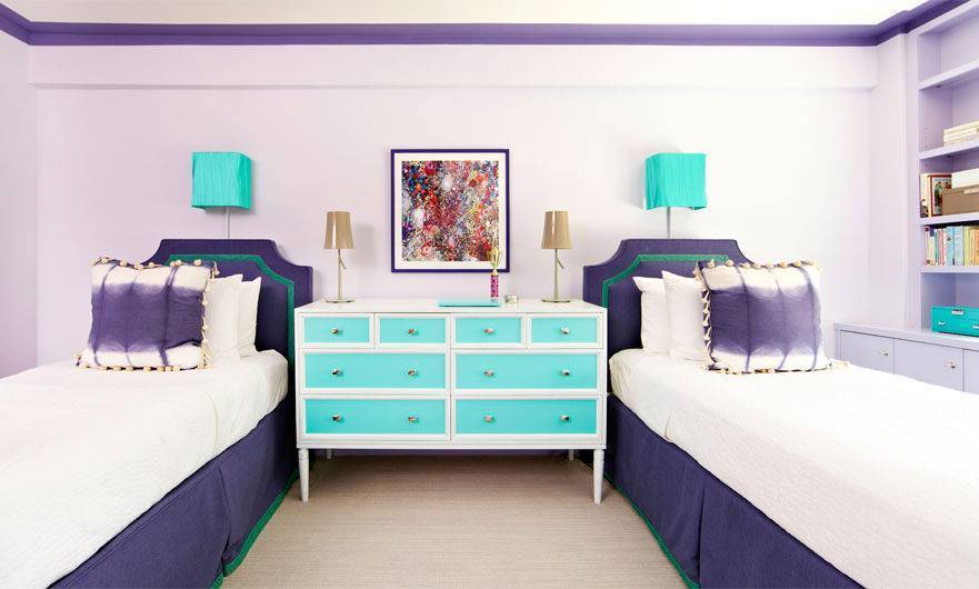 Фиолет в большом количестве может негативно влиять на настроение. Поэтому психологи рекомендуют не просто знать с какими цветами стоит сочетать фиолетовый, но и придерживаться двух правил при оформлении детских комнат: