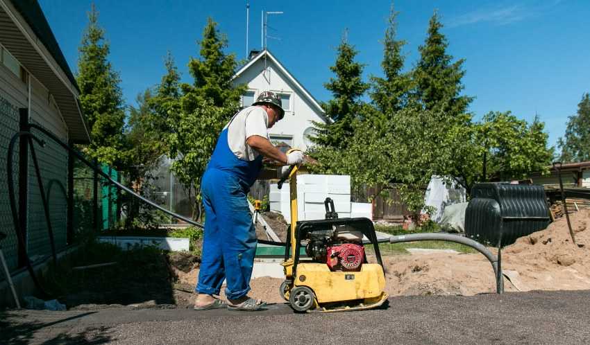 Прежде чем заливать бетон, необходимо подготовить ровную площадку и как следует утрамбовать её специальной машиной (виброплитой).Виброплита своими руками: (прочитать подробнее)