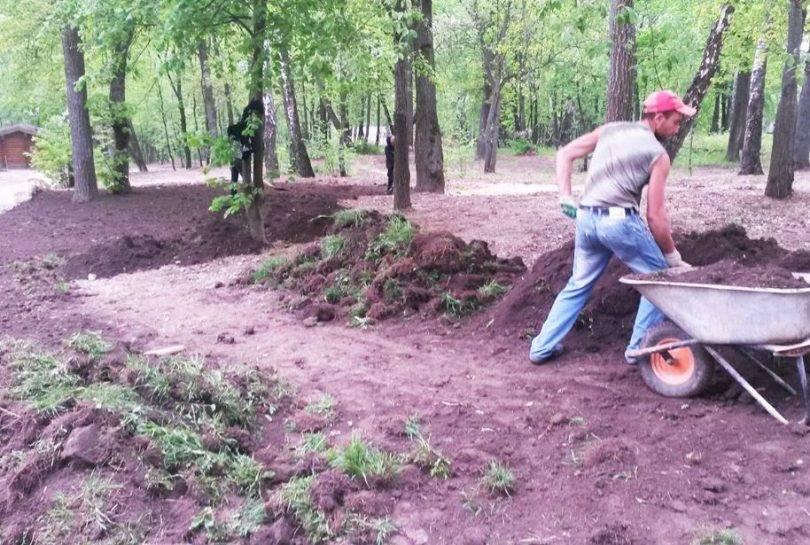 - Завозим плодородный грунт в смеси с песком. Он нужен для выравнивания поверхности.