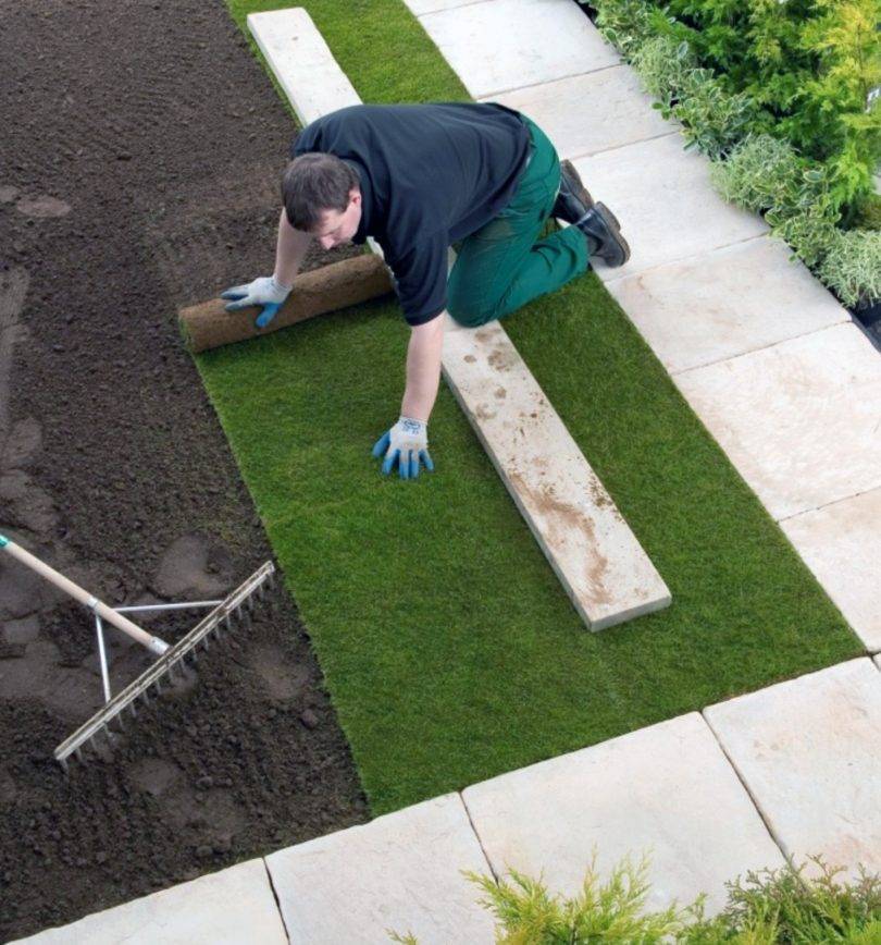 Если вы укладываете рулонный газон, то вам нужно подготовить ровную площадку для размещения корневой системы и точно совместить куски. Каждый продавец дает рекомендации, которым вы должны следовать.