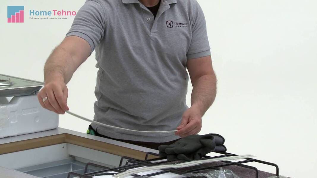 - Установить в проем резиновый уплотнитель, если он идет в комплекте к варочной поверхности, или специальный бортик. С обратной стороны плиты наживить на шурупы прижимные лапки.