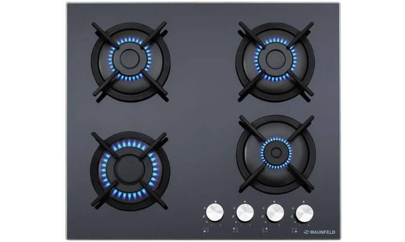 Поверхность изготовлена из ударопрочного закаленного стекла, которое быстро остывает и легко чистится. Поворотные переключатели режимов работы теснятся у самой кромки и оснащены механизмом автоподжига.