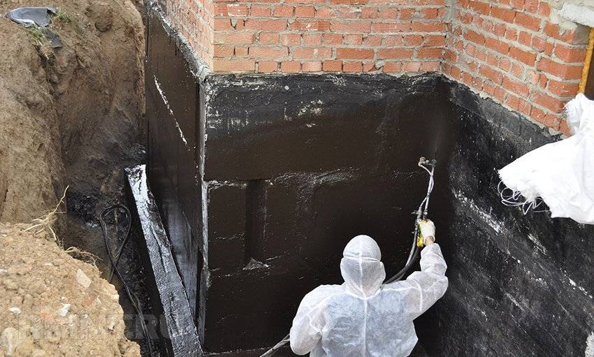 - Далее на стенки сооружения можно наносить обмазочный состав. Для этих целей подходит битумная или гудроновая мастика.