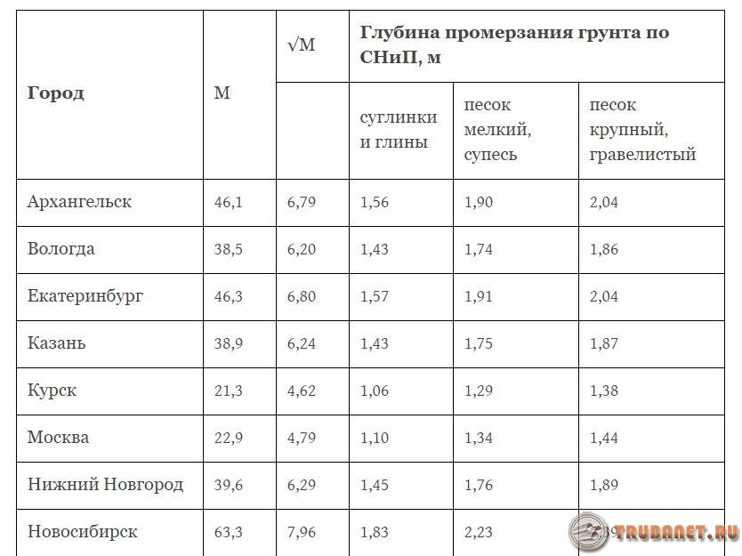 При прокладке трубопровода нужно обязательно учитывать глубину промерзания грунта. В каждом регионе этот уровень отличается. Чем суровее зимы в определенной местности, тем глубже должна быть траншея для канализационного трубопровода.