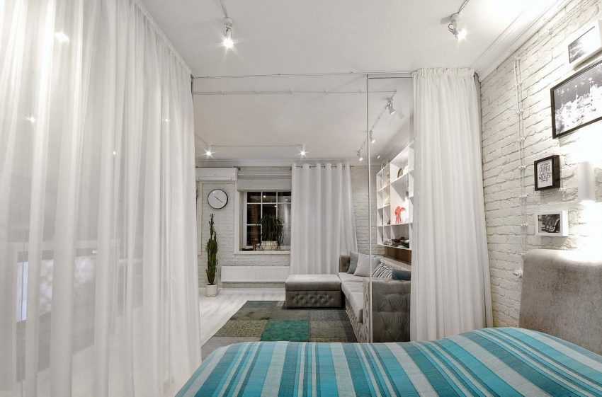 Итак, рассмотрим самые разные варианты деления комнаты на две зоны: спальню и гостиную.