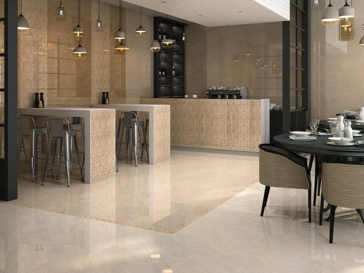 Лощеный керамогранит идеально подходит для пола и стен.