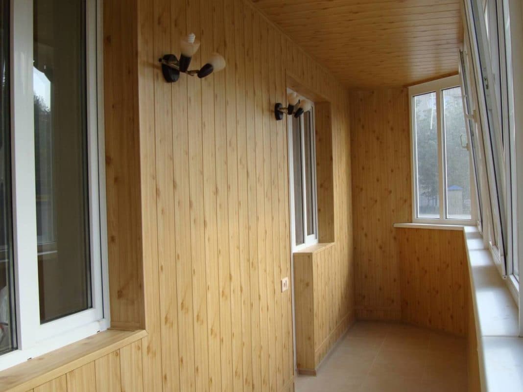 Одним из наиболее популярных и недорогих материалов, использующихся для отделки балкона, является деревянная вагонка.