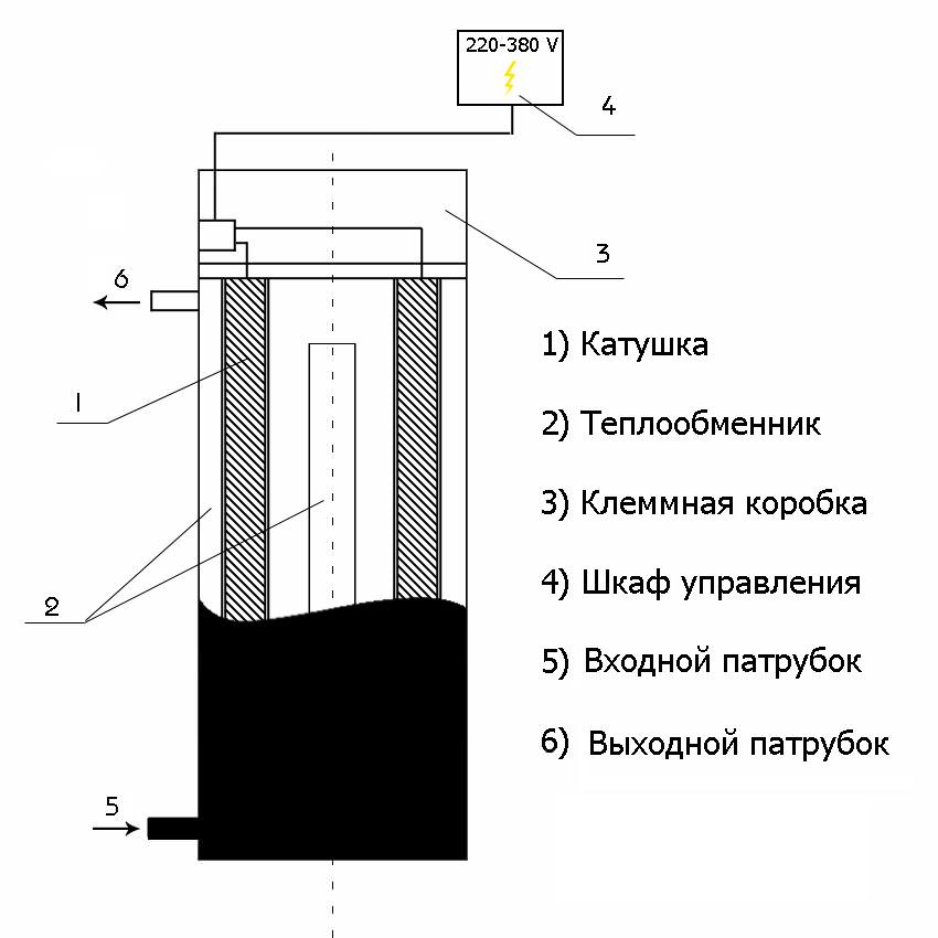 Внутри индукционной катушки можно установить через изоляцию корпус теплообменника, внутри которого будет циркулировать нагреваемая жидкость. Благодаря высокой эффективности технология индукционного нагрева даже при минимальном расходе электричества обеспечивает выделение большого количества тепловой энергии, что позволяет качественно обогревать помещение.