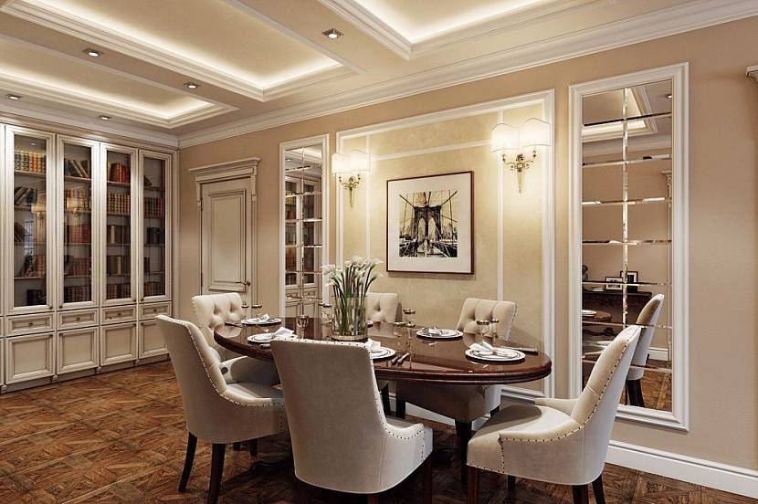 Для этого стиля характерна простая форма, строгие детали и симметрия в построении. Классика не терпит вычурно го оформления и нагромождения декора.