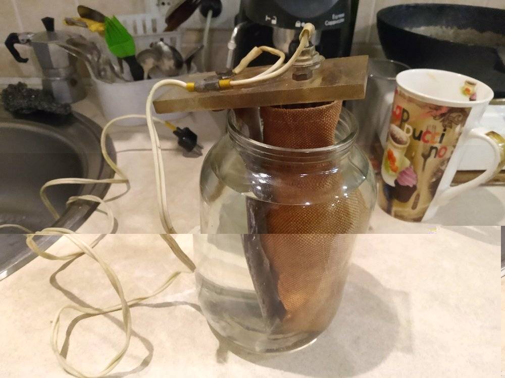 - к шнуру прикрепить электроды длиной из расчета 10 см на 0,5-литровую банку;