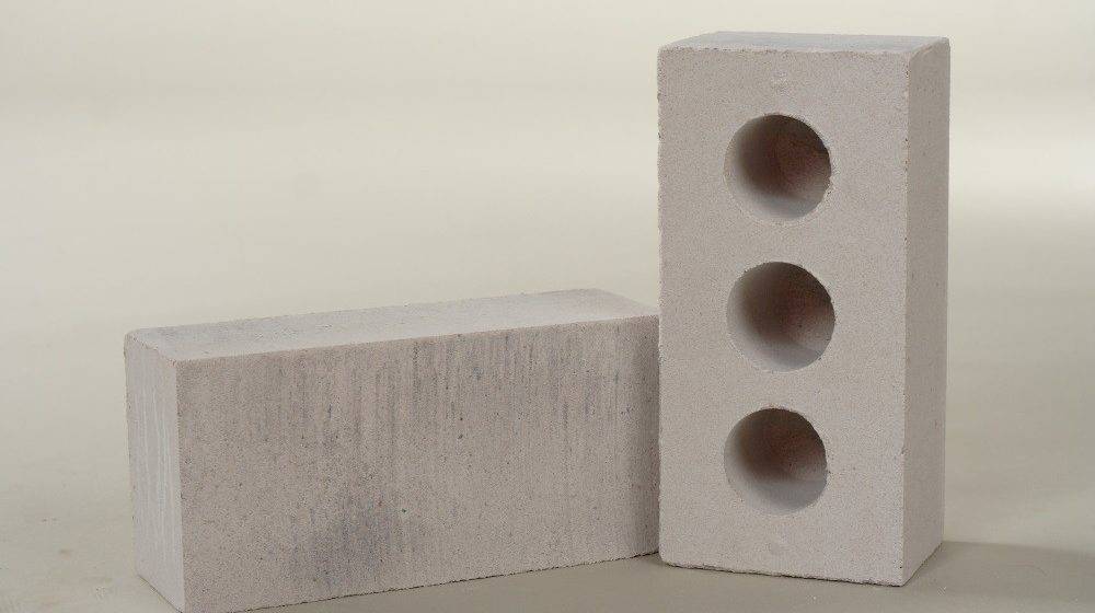 Самым распространённым и недорогим является силикатный кирпич белого цвета. Основными компонентами является кварцевый песок до 95%, известь 5–7%. Смесь перемешивают, гасят известь и запекают в печах, в результате бруски приобретают прочность. Изделие обладает высокой теплопроводностью и впитывают влагу. Поэтому не рекомендуется использовать силикат для цоколя, постройки дымоходов, каминов. Отлично подходят для возведения внутренних перегородок, наружной облицовки здания. Производители выпускают кирпич с гладкой и рельефной поверхностью.