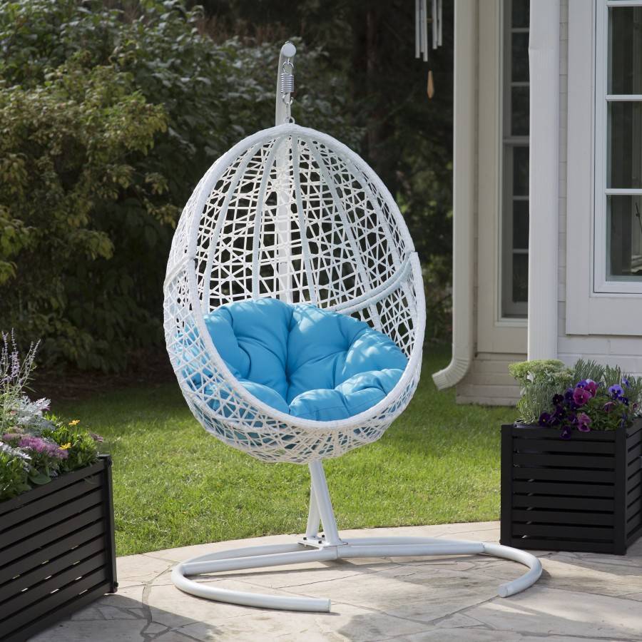 По стилю и дизайну в настоящее время выбор подвесных кресел просто огромен. Конечно, форма яйца не теряет свою популярность уже много десятилетий подряд. Именно этот вид чаще всего выбирают для садовых участков. Он привлекателен тем, что в нем очень удобно спрятаться от всего и побыть наедине с самим собой.