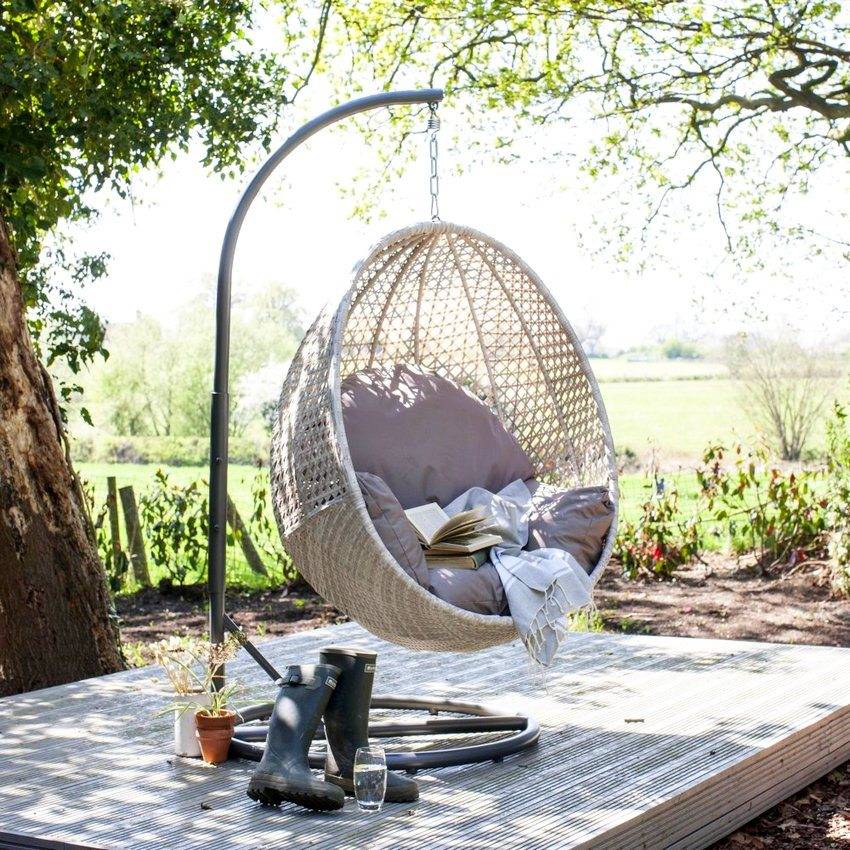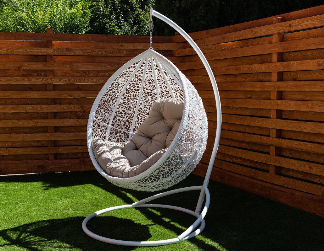 Такое подвесное кресло позволит создать на участке особую атмосферу, располагающую к умиротворению и покою