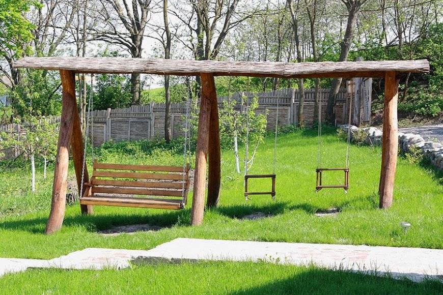 100+ фото Качелей из бревен своими руками. Схемы. Пошаговые фото.