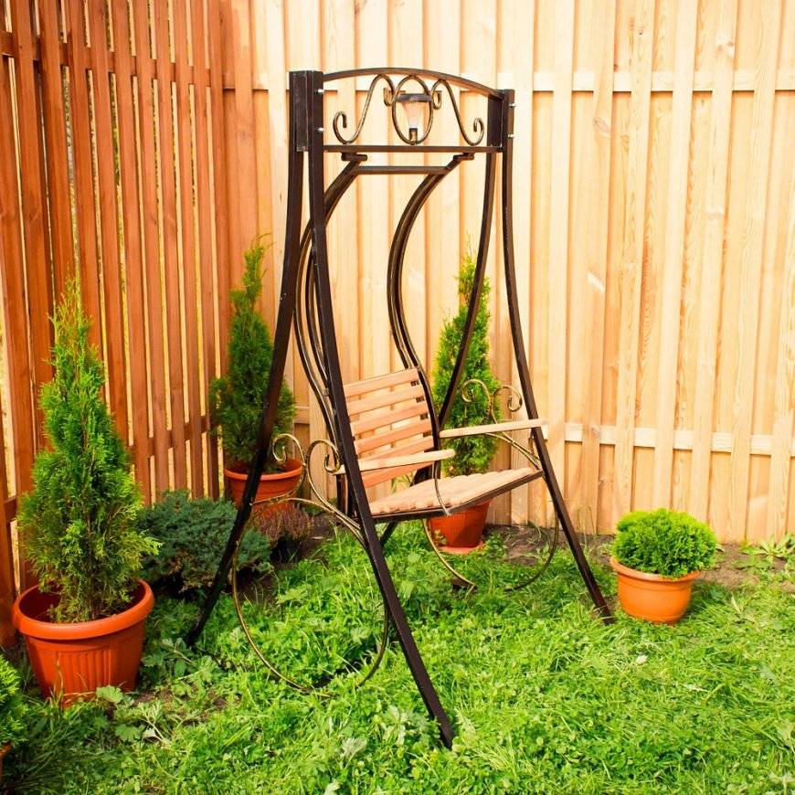 - данный тип металлических качелей для дачи может быть как переносным, так и стационарным;
