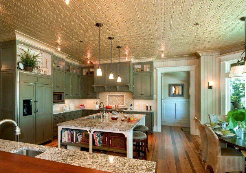 Для кухни рекомендуют устанавливать каркас из металла, так как дерево впитывает влагу, запахи. Деревянные рейки чаще используют для оформления загородных домов, дач, комнат, отделанных деревом.