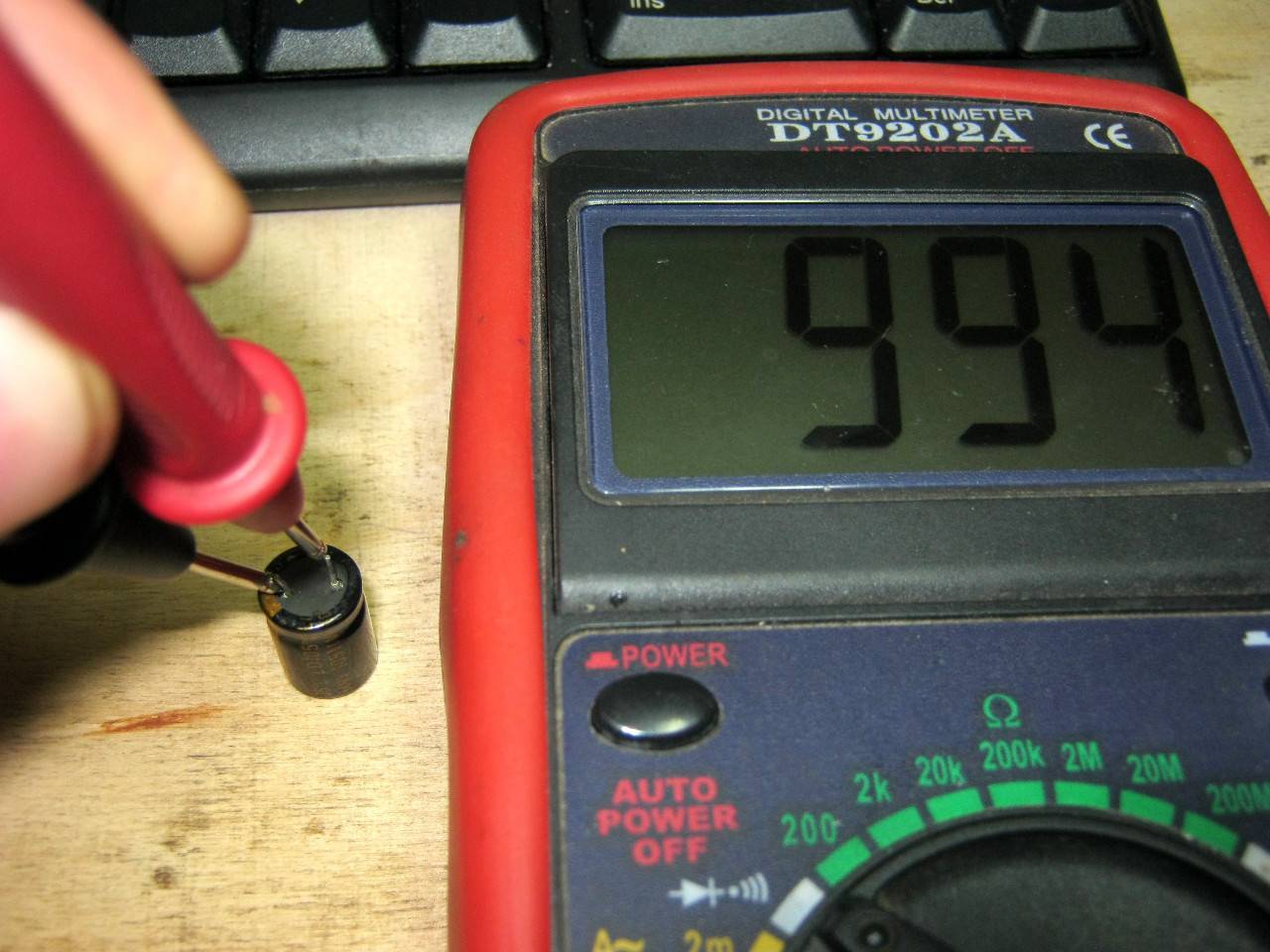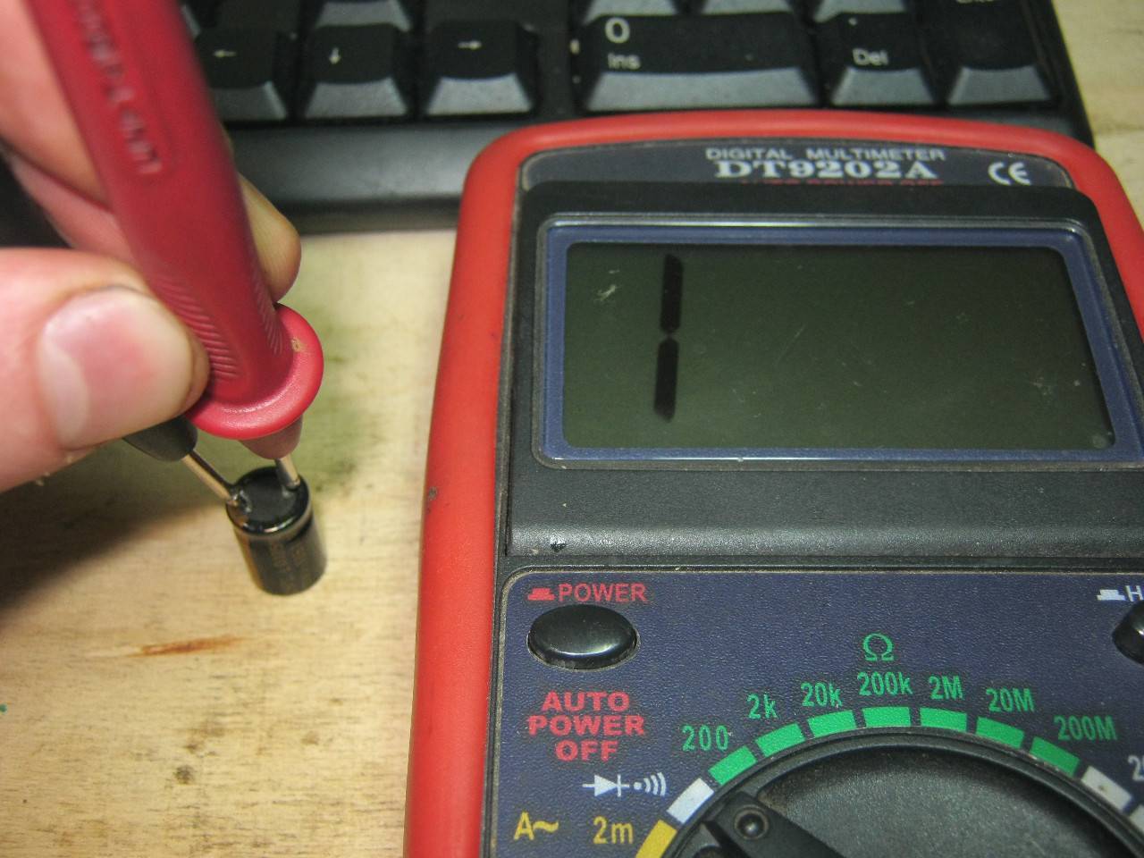 Для того, чтобы проверить целостность конденсатора мультиметром, его емкость должна быть от 1 мкФ и выше. Этот трюк получается только с аналоговыми мультиметрами, а также с цифровыми мультиметрами выбора диапазонов, типа таких.