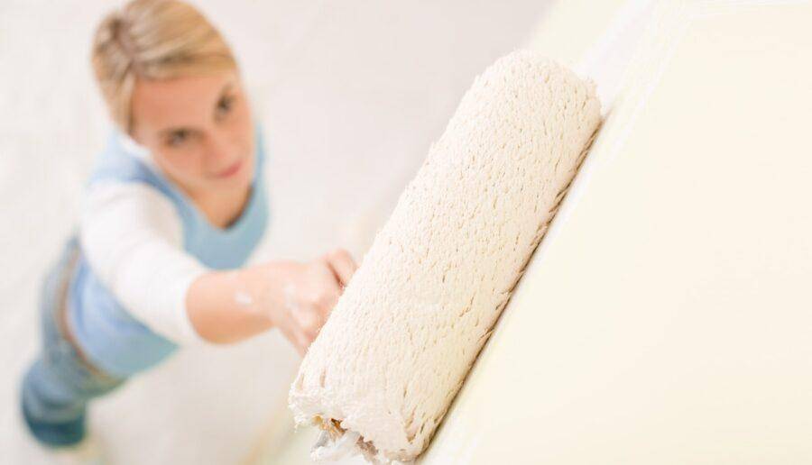 Для нанесения смеси потребуется валик. Им можно легко покрыть всю поверхность, а вот для углов уместно использовать кисточку.