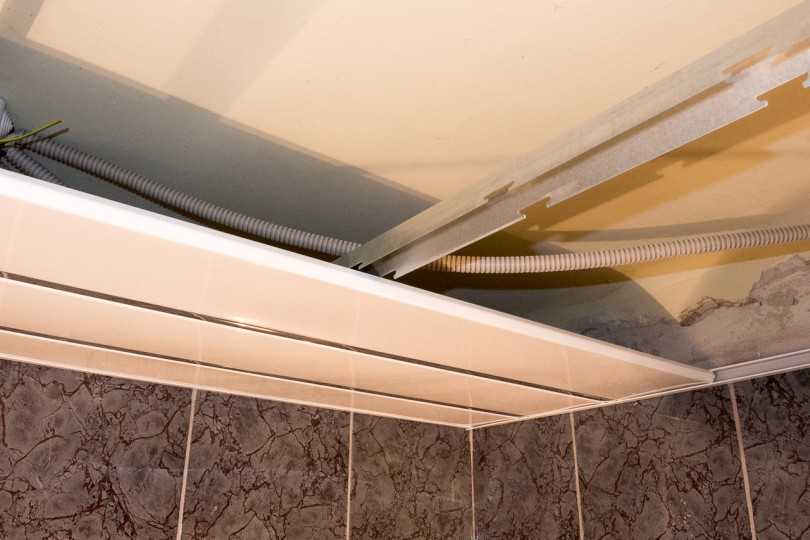 - Между поверхностью потолочного перекрытия и панелями образовывается пространство, в которое может помещаться дополнительная изоляция и коммуникации, включая электропроводку.