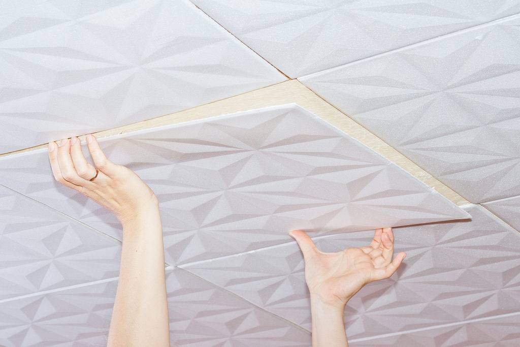 Как клеить плитку на потолок: две технологии
