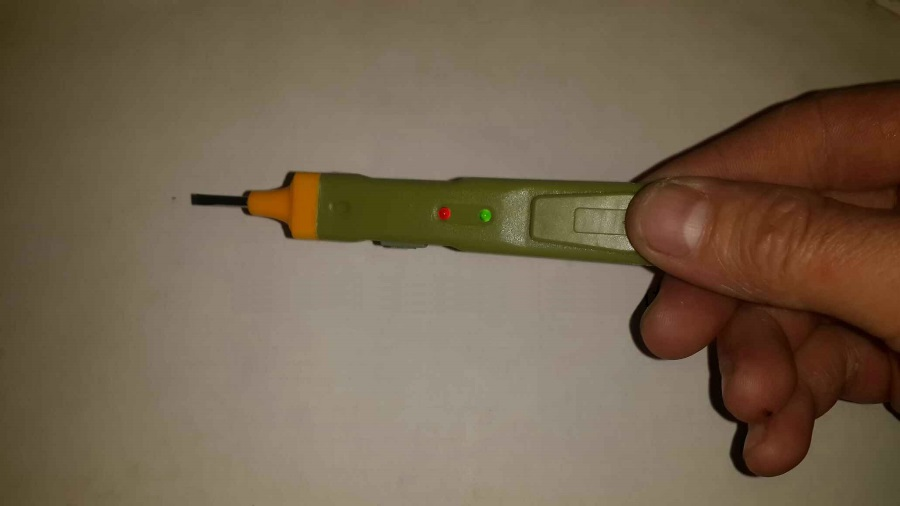 Индикатор напряжения на конце имеет сигнальную лампочку. Если напряжение в розетке или выключателе есть, лампочка “подаст сигнал”