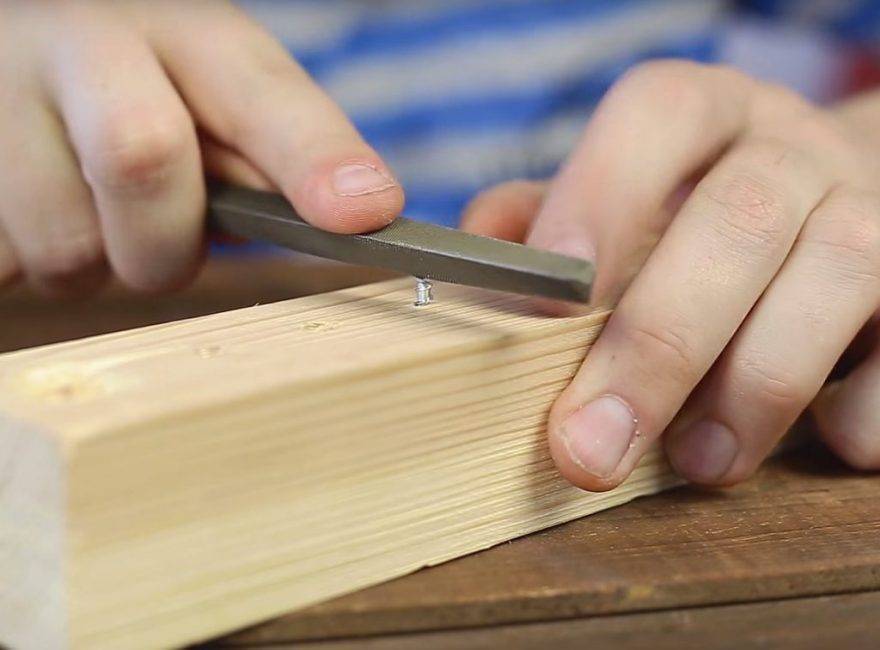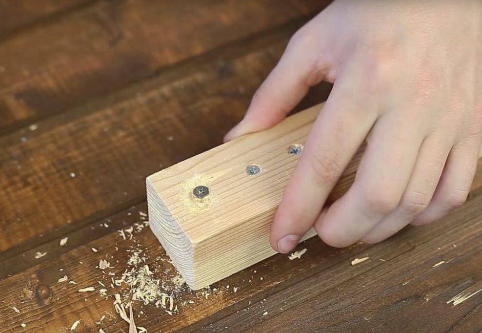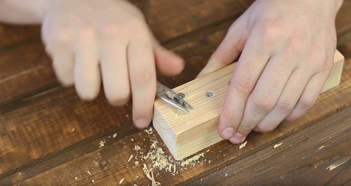 Данный способ применяется в том случае, если не жалко испортить внешний вид доски, в которую был вкручен шуруп. Это самый надёжный способ, суть которого сводится к очистке от древесных волокон места расположения шляпки шурупа с последующей его экстракцией любым удобным способом.