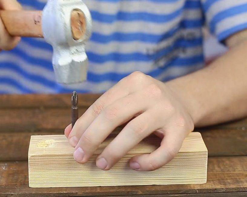 Один из действенных способов – постукивание молотком по шляпке сорванной конструкции.