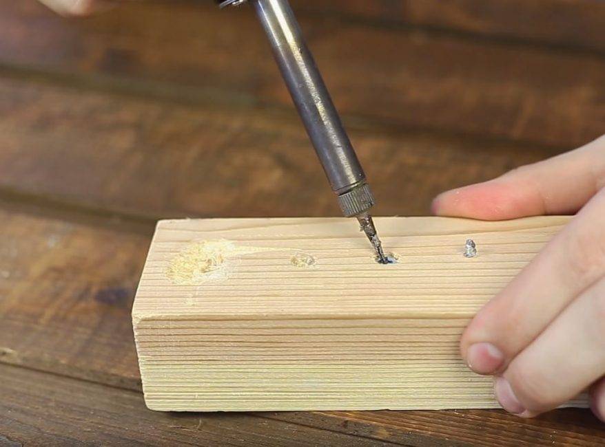 Вначале шляпка шурупа прогревается при помощи паяльника