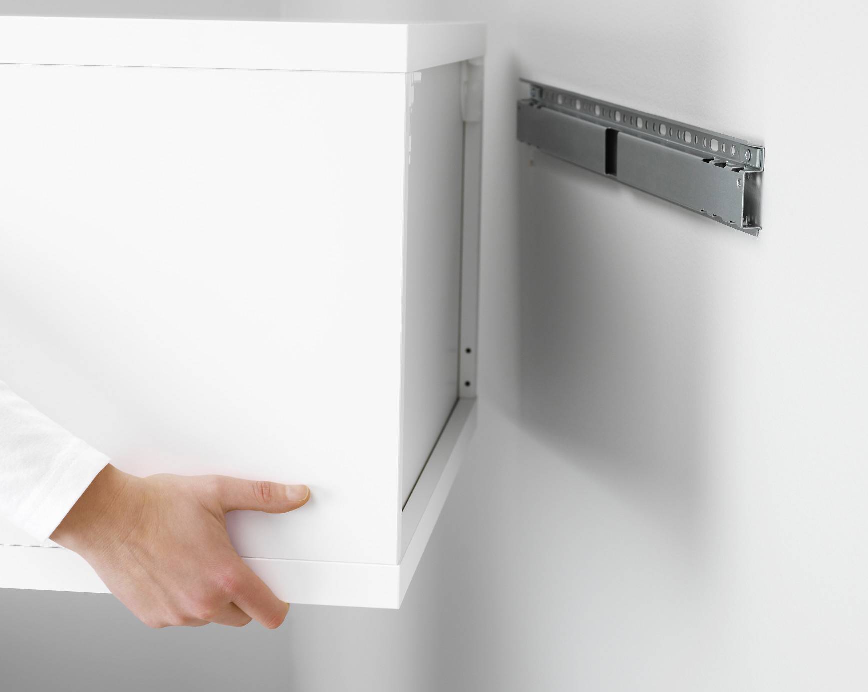 Она может быть 2,5 сантиметра или 3,2. Каждый крепежный элемент может выдержать до 10-15 килограмм веса. Максимальный вес шкафа, который можно прикрепить, равен не больше 20-25 килограмм.