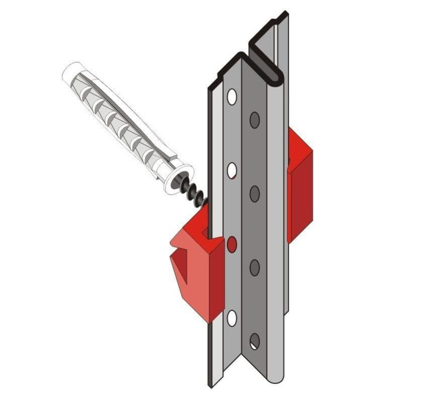 - В дюбель вкручивают саморез, предварительно надев на него фиксирующий рейки «ушастик».