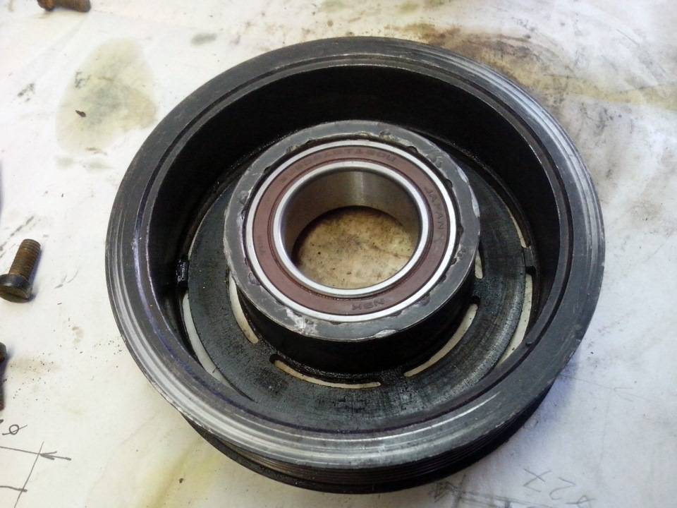 Если после включения кондиционера появляется шум, нехарактерный для нормальной работы системы, то наиболее вероятной причиной является поломка подшипника шкива. Происходить это может по ряду факторов: низкое качество дорог, неправильная работа электроники и отсутствие работоспособности отдельных узлов. При выявлении такой поломки её нужно устранять в минимально короткие сроки, поскольку она приводит к повреждению электромагнитной муфты. Для проверки последней запускают мотор и нажимают кнопку кондиционера. Обороты двигателя при этом немного снизятся, а также будет слышен характерный щелчок, свидетельствующий о включении муфты. Если этого не произошло, нужно разбираться, чем вызвана неисправность.