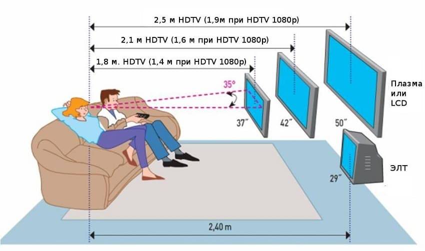 Особое внимание при выборе размера телевизора следует обращать на расстояние от точки просмотра