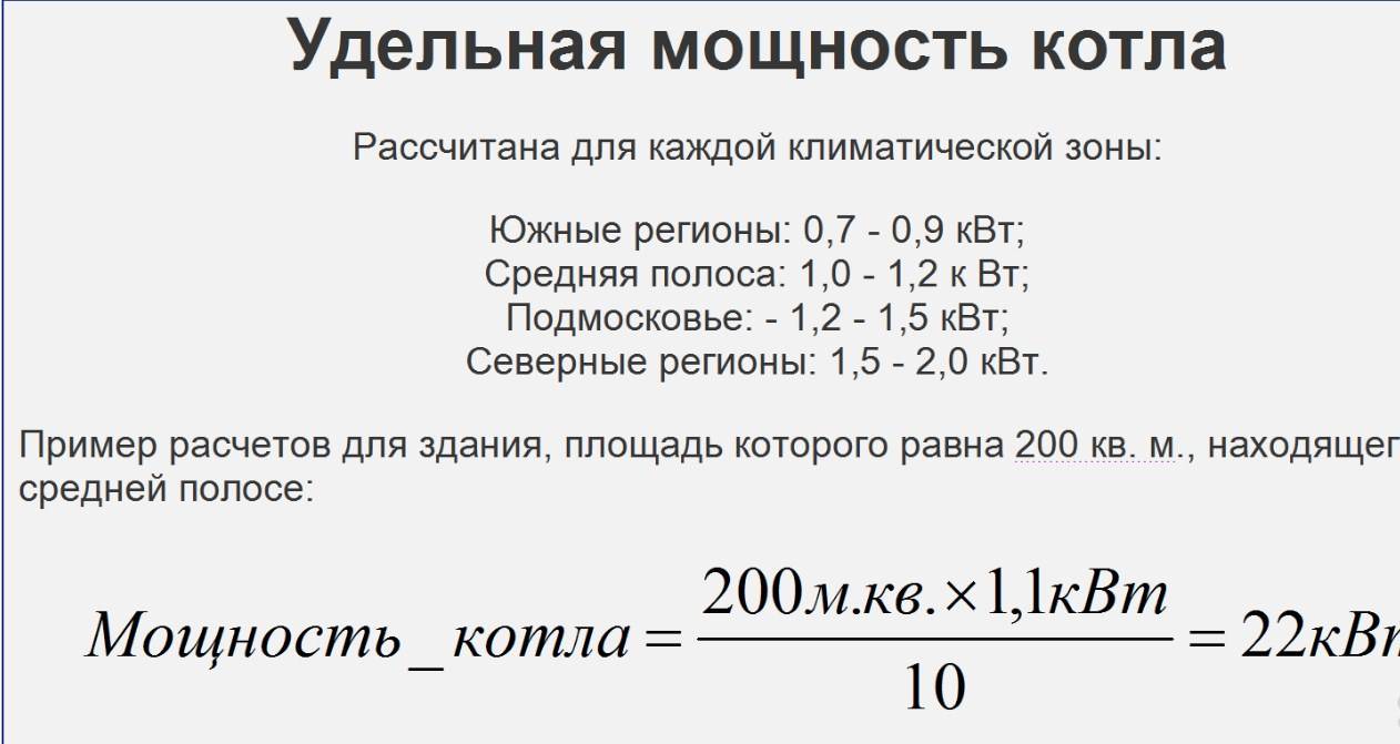 В итоге мощность котла, обогревающего строение на 200 «квадратов», расположенное в Московской или Ленинградской области, равняется 30 кВт (200 х 1,5 / 10).