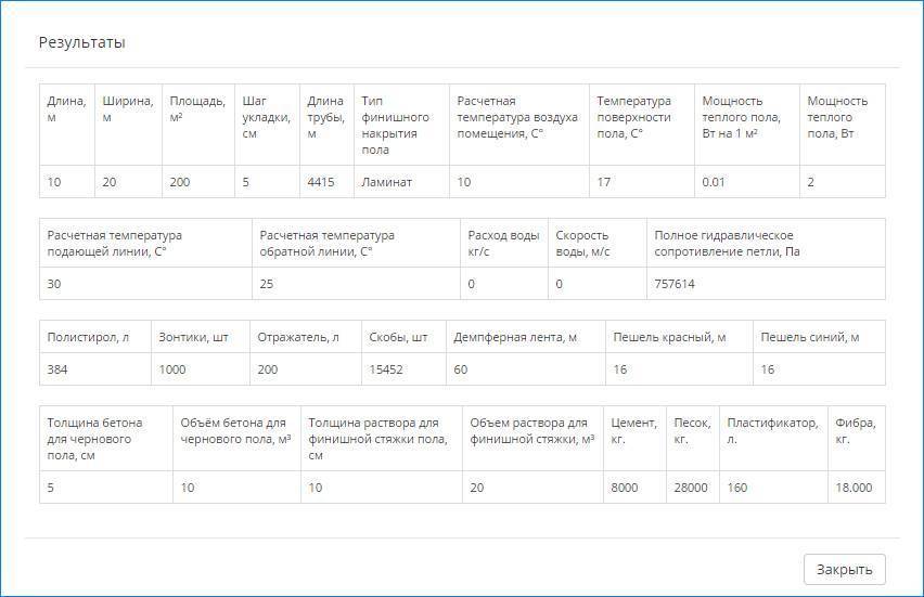 Подводя итоги, можно сделать вывод – данный калькулятор отличается более продвинутым функционалом, чем его аналоги. В его базу вносятся, помимо типичных данных, еще и информация о начальной и финишной стяжке, толщина полистирола и квадратура помещения. Эти функции делают его отличным помощником при прокладке теплых полов в вашем доме.