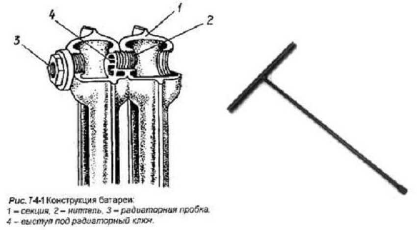 Такой метод позволяет не допустить перекосов, которые свойственны алюминиевым радиаторам. Если процесс откручивания затруднен, то на конце ключа обычно есть специальное отверстие, куда можно вставить стержень для усиления.